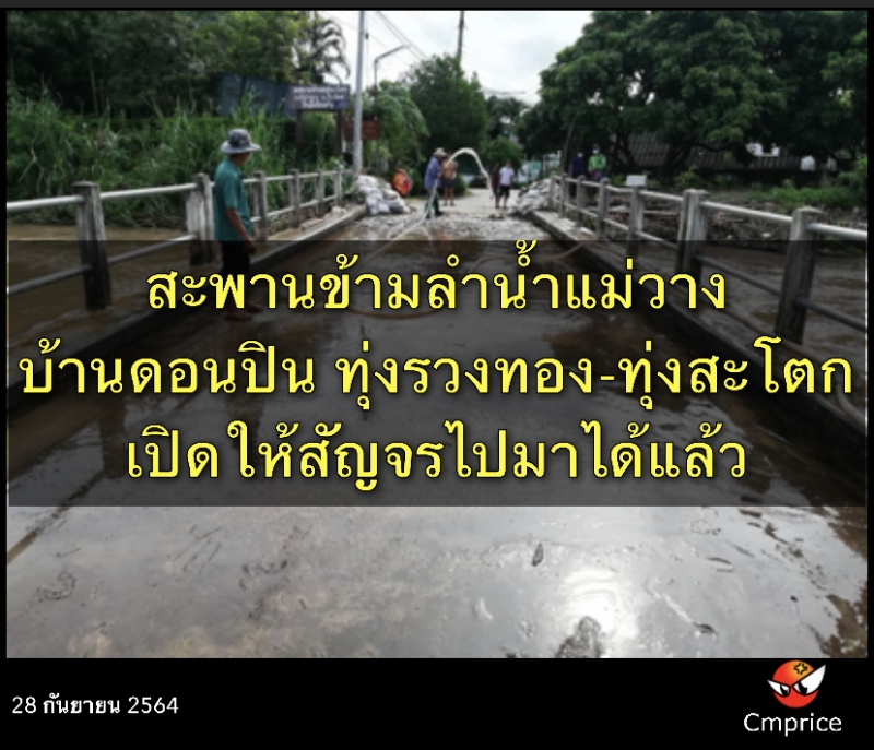วันนี้ 28 กันยายน 2564 รับแจ้งจากทาง อบต.ทุ่งรวงทองPr  ว่าเช้านี้เปิดสะพานข้ามลำน้ำแม่วาง บ้านดอนปิน ม.8 ต.ทุ่งรวงทอง , บ้านทุ่งสะโตก ม.10 ต.ทุ่งสะโตกให้สัญจรไปมาได้แล้ว จาก เหตุการณ์น้ำหลากเมื่อหลายวันที่ผ่านมาน้ำแม่วางทะลักท่วม ต.ทุ่งสะโตก อ.สันป่าตอง และ ต.ทุ่งรวงทอง อ.แม่วาง.