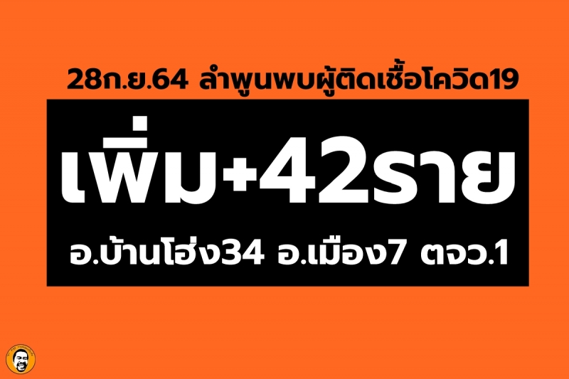 28กันยายน64 ศูนย์ข่าวโควิด 19 ลำพูน ได้แถลง ลำพูนพบผู้ติดเชื้อเพิ่ม 42ราย โดยเป็นการติดเชื้อในจังหวัด41ราย มาจากต่างจังหวัด1ราย แบ่งตามพื้นที่พบใน อ.บ้านโฮ่ง34 อ.เมือง7 (ดูและฟังแถลง ได้ข้างล่างสุด )