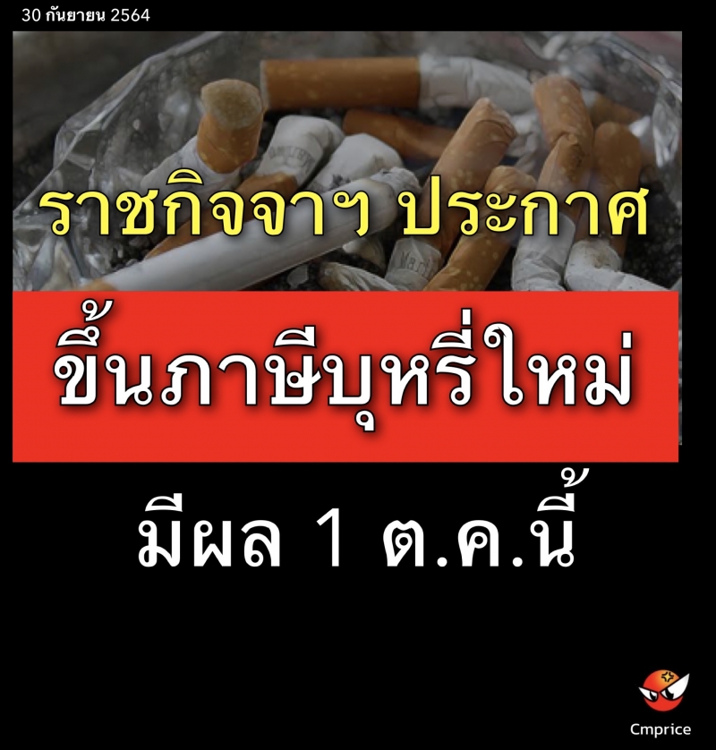 | • ราชกิจจาฯ ประกาศขึ้นภาษีบุหรี่ใหม่ มีผล 1 ต.ค. |