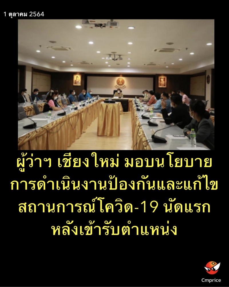 ผู้ว่าฯ เชียงใหม่ มอบนโยบายการดำเนินงานป้องกันและแก้ไขสถานการณ์โควิด-19 นัดแรก หลังเข้ารับตำแหน่ง