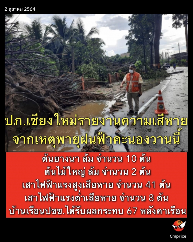 ปภ.เชียงใหม่รายงานความเสียหายจากเหตุพายุฝนฟ้าคะนองวานนี้
