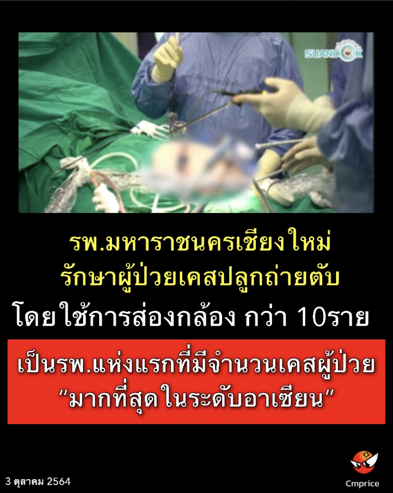 โรงพยาบาลมหาราชนครเชียงใหม่ โชว์ศักยภาพ รักษาผู้ป่วยเคสปลูกถ่ายตับโดยใช้การส่องกล้อง กว่า 10 รายแล้วนับเป็นความสำเร็จระดับต้นๆ ของอาเซียน