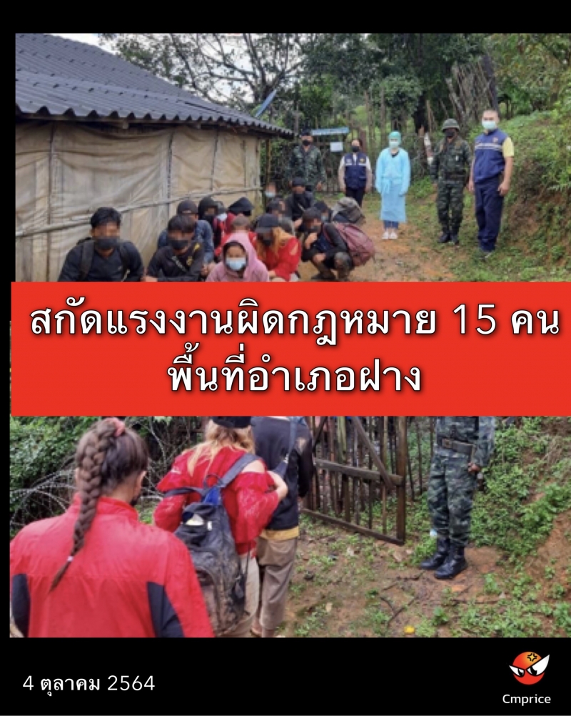 วันที่ 4 ต.ค. 64 พล.ต. นฤทธิ์ ถาวรวงษ์ ผู้บัญชาการกองกำลังผาเมือง เปิดเผยว่า กองร้อยทหารม้าที่ 3 หน่วยเฉพาะกิจกรมทหารม้าที่ 4 กองกำลังผาเมือง ฐานปฏิบัติการบ้านหลวง นำกำลัง 1 ชุดปฏิบัติการบูรณาการหน่วยงานท้องถิ่น ผู้ใหญ่บ้านบ้านหลวง และชุดรักษาความปลอดภัยหมู่บ้านออกลาดตระเวน ตรวจสอบพื้นที่ บริเวณ สวนผลไม้ท้ายหมู่บ้าน บ้านหลวง หมู่ 5 ตำบลแม่งอน อำเภอฝาง จังหวัดเชียงใหม่ ตรวจพบกลุ่มแรงงานต่างด้าวหลบหนีเข้าเมืองโดยผิดกฎหมาย จำนวน 15 คน อายุระหว่าง 15 – 30 ปี เป็นชาย 8 คน หญิง 7 คน ซึ่งจากการสอบสวนพบว่า กลุ่มแรงงานต่างด้าว ดังกล่าวเดินทางมาจากประเทศเมียนมา โดยมีชายไม่ทราบชื่อ สัญชาติจีนเป็นคนนำพาเข้ามา บริเวณช่องทางท้ายหมู่บ้านปางม้า และเดินลัดเลาะตามเส้นทางธรรมชาติ อ้อมผ่านด่านตรวจสามแยกอ่างขาง เพื่อมารอขึ้นรถไปทำงานใน กรุงเทพฯ โดยจ่ายค่านำพาคนละ 29,000 บาท ซึ่งกองร้อยทหารม้าที่ 3 หน่วยเฉพาะกิจกรมทหารม้าที่ 4 กองกำลังผาเมือง ได้ประสานให้เจ้าหน้าที่ โรงพยาบาลส่งเสริมสุขภาพตำบลดอยอ่างข่าง ตรวจคัดกรองตามมาตรการ ก่อนส่งให้ส่วนที่เกี่ยวข้องดำเนินการตามกฎหมาย