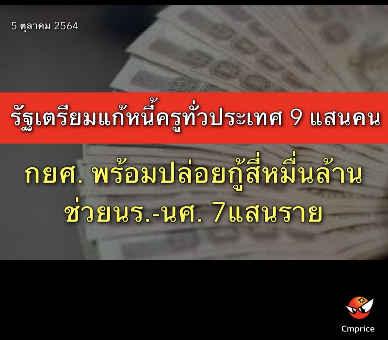 รัฐเตรียมแผนแก้หนี้ครู. ทั่วประเทศประมาณ 9 แสนคน. กยศ. พร้อมปล่อยกู้สี่หมื่นล้าน ช่วยนักเรียนนักศึกษา7แสนราย