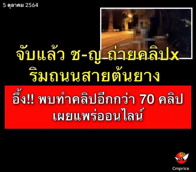 | • จับแล้ว ช-ญ ถ่ายคลิปxถนนสายต้นยาง อึ้ง!! พบทำคลิปอีกกว่า 70 คลิป เผยแพร่ออนไลน์ |
