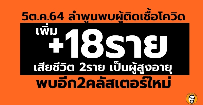 5ตุลาคม64 ศูนย์ข่าวโควิด 19 ลำพูน ได้แถลง ลำพูนพบผู้ติดเชื้อเพิ่ม 18ราย โดยเป็นการติดเชื้อในจังหวัด17ราย มาจากต่างจังหวัด1ราย