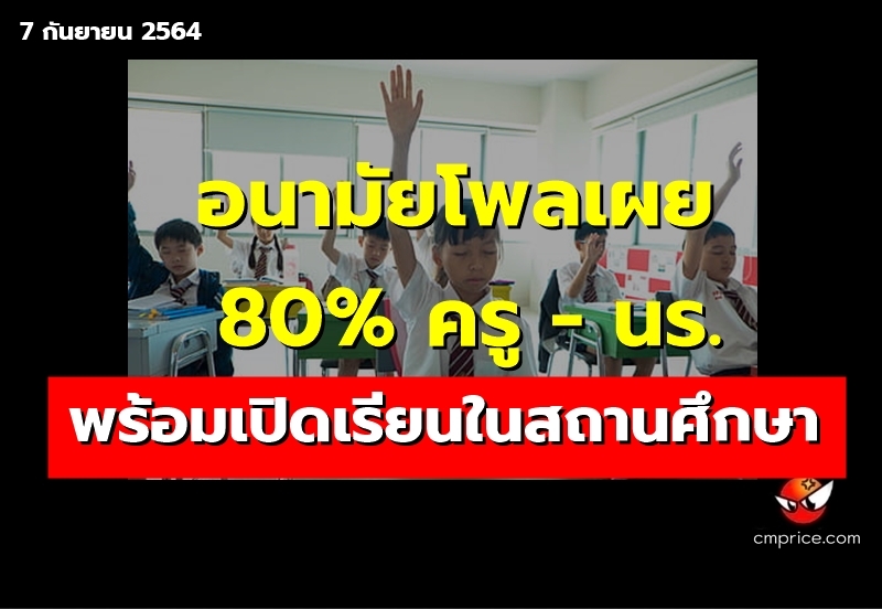 | • อนามัยโพลพบกว่า 80% ครู - นร.พร้อมเปิดเรียนในสถานศึกษา |
