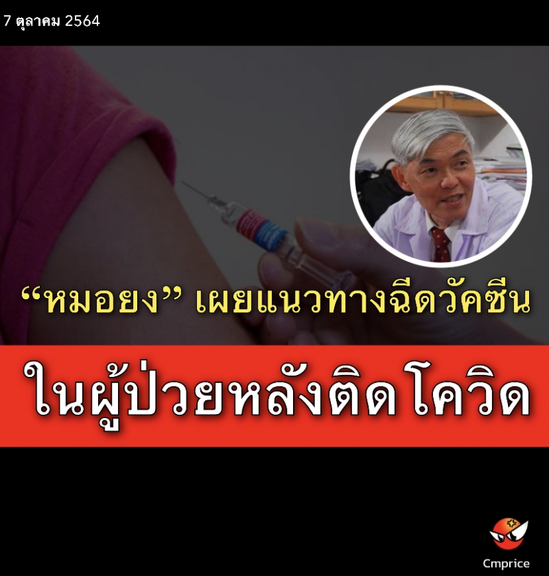 โควิด-19 วัคซีน การให้วัคซีนใน ผู้ป่วยหลังเป็นโควิด 19 แล้ว ยง ภู่วรวรรณ 7 ตุลาคม พ.ศ. 2564
