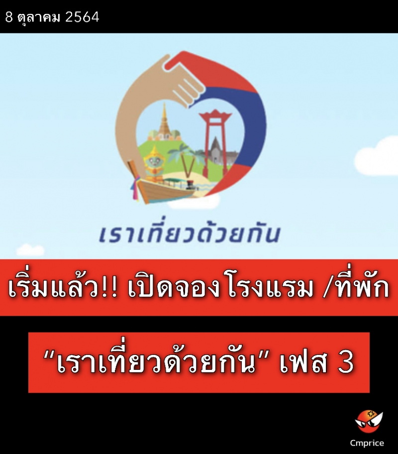 นายธนกร วังบุญคงชนะ โฆษกประจำสำนักนายกรัฐมนตรี เผย “โครงการเราเที่ยวด้วยกัน เฟส 3” เปิดให้ประชาชนจองโรงแรม / ที่พักแล้ว ตั้งแต่วันที่ 8 ตุลาคม – 23 ตุลาคม 2564 เข้าพักได้ตั้งแต่วันที่ 15 ตุลาคม 2564 เป็นต้นไป สิ้นสุดโครงการวันที่ 31 มกราคม 2565 โดยโครงการเราเที่ยวด้วยกัน รัฐบาลจะสนับสนุนค่าโรงแรม 40% ของราคาที่พักต่อห้องต่อคืน ไม่เกิน 3,000 บาท ต่อห้องต่อคืน จำกัดสิทธิคนละไม่เกิน 15 ห้อง หรือ15 คืน พร้อมสนับสนุนส่วนลด e-voucher คูปองอาหา ร / ท่องเที่ยวมูลค่า 600 บาท ต่อห้องต่อคืน เมื่อเข้าพัก Check-In ที่โรงแรม โดยคูปองอาหาร /ท่องเที่ยว สามารถใช้ได้ที่ร้านอาหารและสถานที่ท่องเที่ยวที่ร่วมโครงการ ประชาชนชำระ60% และรัฐบาลสนับสนุนอีก 40% ผ่านการตัดเงินจากคูปอง