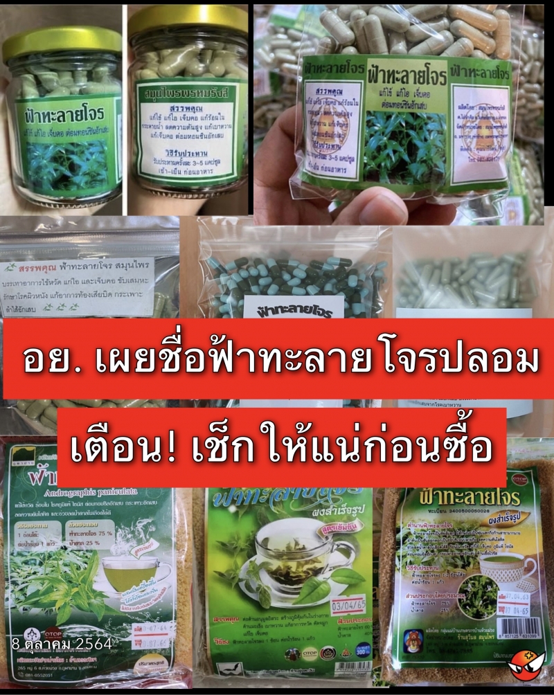 | • อย. เผยชื่อฟ้าทะลายโจรปลอมอีก 11 รายการ เตือน! เช็กให้แน่ก่อนซื้อ |