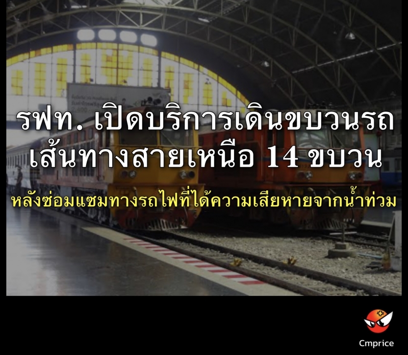 รฟท. เปิดบริการเดินขบวนรถในเส้นทางสายเหนือ จำนวน 14 ขบวน หลังซ่อมแซมทางรถไฟที่ได้ความเสียหายจากน้ำท่วม