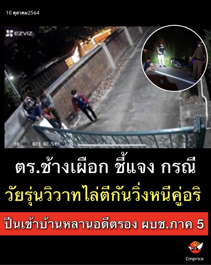 ตร.ช้างเผือก ชี้แจง กรณีวัยรุ่นวิวาทไล่ตีกัน แล้ววิ่งหนีคู่อริ ปีนเข้าบ้านหลานอดีตรอง ผบช.ภาค 5 ถึงสองครั้ง!