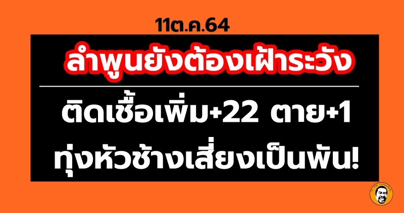 11ตุลาคม64 ศูนย์ข่าวโควิด 19 ลำพูน ได้แถลง ลำพูนพบผู้ติดเชื้อเพิ่ม 22ราย โดยเป็นการติดเชื้อในจังหวัด19ราย มาจากต่างจังหวัด3ราย