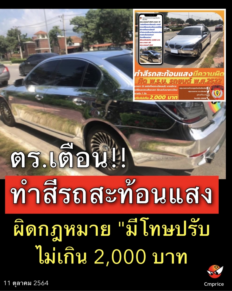 | • ตร.เตือน!! ทำสีรถสะท้อนแสง ผิดกฎหมาย "มีโทษปรับ ไม่เกิน 2,000 |