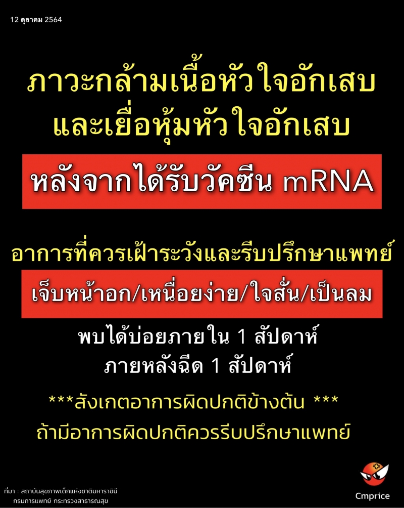 | • ภาวะกล้ามเนื้อหัวใจอักเสบและเยื่อหุ้มหัวใจอักเสบ หลังจากได้รับวัคซีน mRNA |