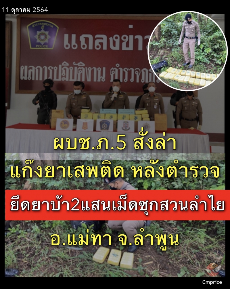 ผบช.ภ.5 สั่งล่าแก๊งยาเสพติดหลังตร.ยึดยาบ้า2แสนเม็ดซุกสวนลำไย อ.แม่ทา จ.ลำพูน