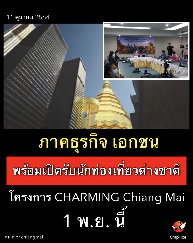 | • ภาคธุรกิจ เอกชน พร้อมเปิดรับนักท่องเที่ยวต่างชาติ 1 พ.ย. นี้ ตามโครงการ CHARMING Chiang Mai |
