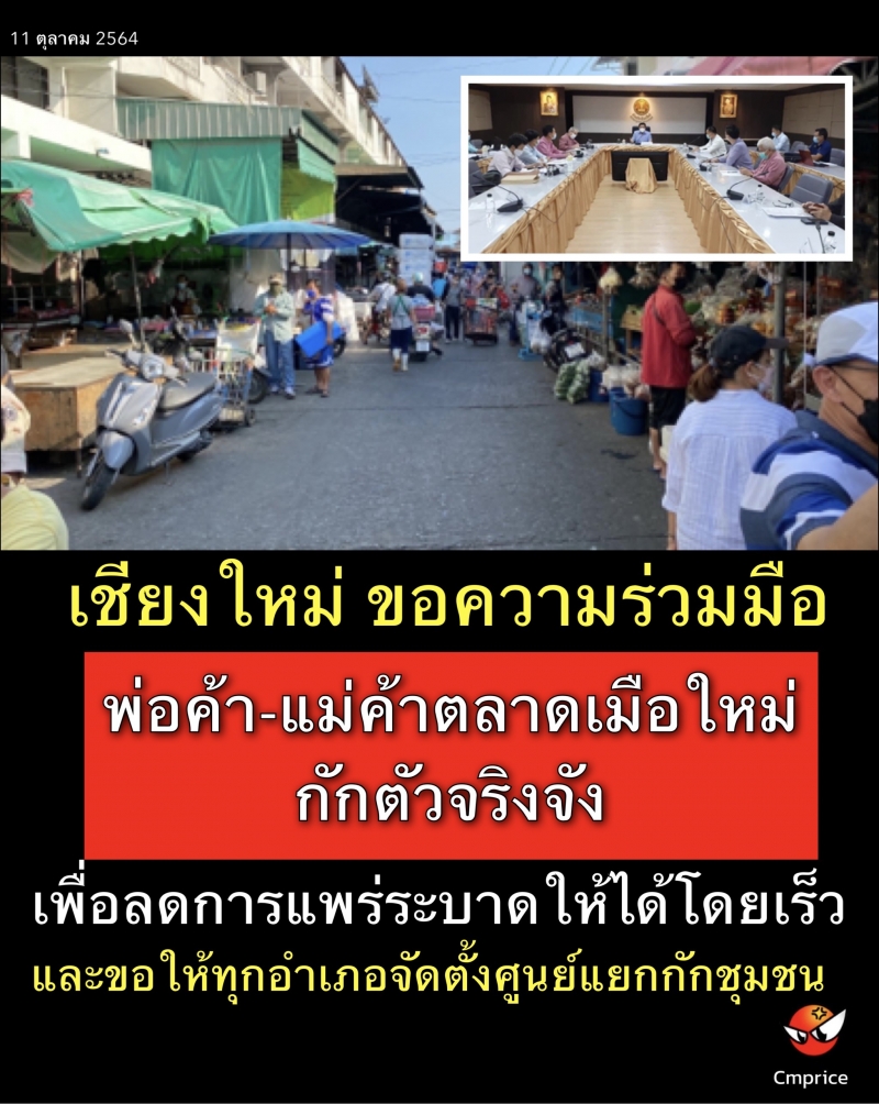 เชียงใหม่ขอให้ทุกอำเภอ จัดตั้งศูนย์แยกกักชุมชนแบะขอความร่วมมือพ่อค้า-แม่ตลาดเมืองใหม่กักตัวจริงจัง เพื่อลดการแพร่ระบาดให้ได้โดยเร็ว