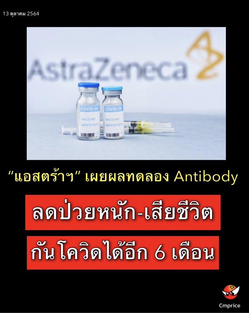 | • แอสตร้าฯ เผยผลทดลอง Antibody แบบผสม AZD7442 ลดป่วยหนัก-เสียชีวิต กันโควิดได้อีก 6 เดือน |