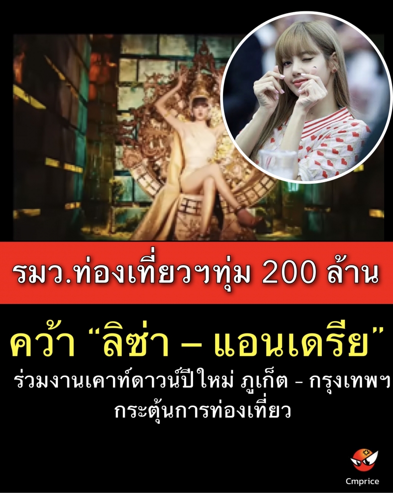 รมว.ท่องเที่ยวฯ เผย เตรียมทุ่มงบ 200 ล้าน คว้า “ลิซ่า BLACKPINK – แอนเดรีย” 2 ศิลปินระดับโลก มาร่วมงานเคาท์ดาวน์ปีใหม่ที่ ภูเก็ต – กรุงเทพฯ กระตุ้นการท่องเที่ยว