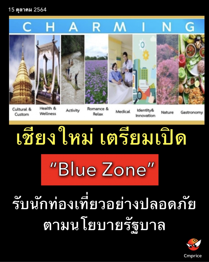 นายประจญ ปรัชญ์สกุล ผู้ว่าราชการจังหวัดเชียงใหม่ ได้ให้สัมภาษณ์สื่อมวลชนภายหลังการประชุม ถึงมติของที่ประชุมว่า จากเดิมจังหวัดเชียงใหม่ได้กำหนดพื้นที่นำร่อง CHARMIMG Chiang mai ไว้ที่ 4 อำเภอ ได้แก่ อำเภอเมืองอำเภอแม่ริม อำเภอแม่แตง และอำเภอดอยเต่า แต่ภายหลังจากที่นายกรัฐมนตรีได้ประกาศเปิดประเทศพร้อมกันทุกจังหวัด ในวันที่ 1 พฤศจิกายนนี้ ที่ประชุมจึงเห็นชอบให้มีการเปิด CHARMIMG Chiang mai ในทั้ง 25 อำเภอ และกำหนดพื้นที่ “Blue Zone” หรือพื้นที่ปลอดภัย โดยขณะนี้แม้ว่าจังหวัดเชียงใหม่จะยังคงมีการแพร่ระบาดของโรคโควิด-19 แต่พบว่ายังมีพื้นที่อีกกว่า 80 เปอร์เซ็นต์ ที่เป็นพื้นที่ปลอดภัย ไม่มีการแพร่ระบาด และชุมชนมีความเข้มแข็งสามารถดูแล ป้องกัน แก้ปัญหาโรคโควิด-19 ของชุมชนตนเองได้อย่างมีประสิทธิภาพ ซึ่งจะเป็นพื้นที่ที่นักท่องเที่ยวสามารถเข้าไปท่องเที่ยวได้อย่างปลอดภัย ทั้งนี้ ที่ประชุมได้มอบหมายให้คณะทำงานแต่ละชุดไปประชุมหารือกันในกลุ่มย่อยก่อนจะได้มีการประชุมสรุปความพร้อมในด้านต่าง ๆ อีกครั้ง ในวันที่ 26 ตุลาคม นี้