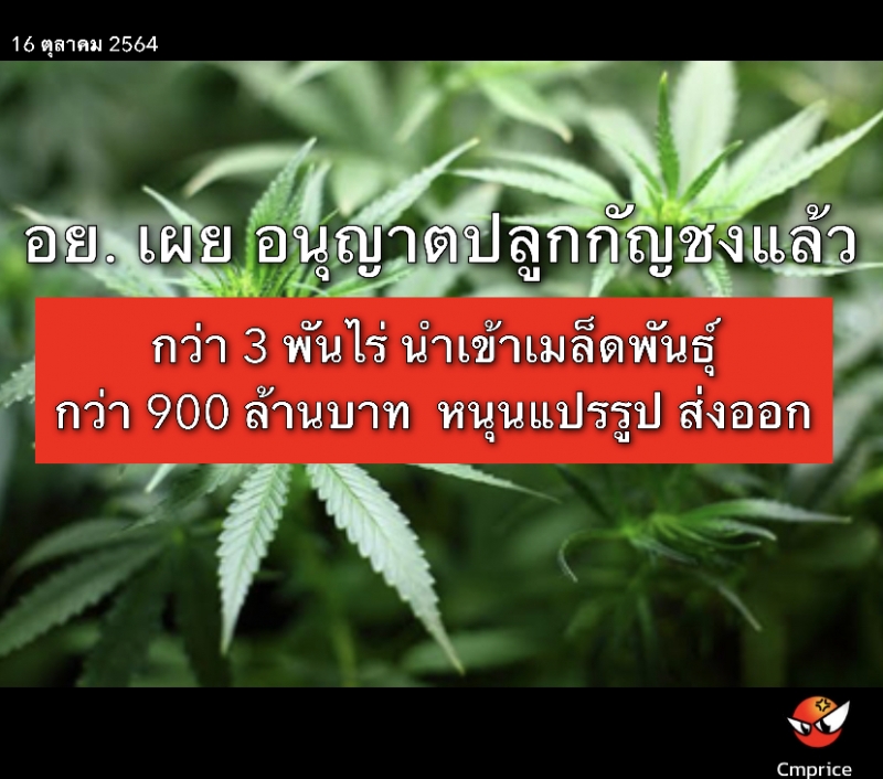 อย. เผย อนุญาตปลูกกัญชงไปแล้วกว่า 3 พันไร่ นำเข้าเมล็ดพันธุ์กว่า 900 ล้านบาท หนุนแปรรูป ส่งออก