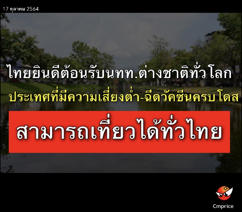 | • ยินดีต้อนรับนักท่องเที่ยวต่างชาติทั่วโลก ย้ำประเทศที่มีความเสี่ยงต่ำและฉีดวัคซีนครบโดสสามารถเที่ยวได้ทั่วไทย |