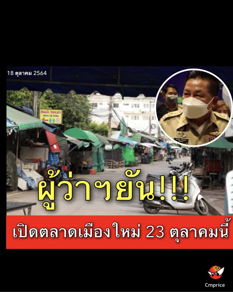 ผู้ว่าราชการจังหวัดเชียงใหม่ ยืนยันเปิดตลาดเมืองใหม่ 23 ตุลาคมนี้ พร้อมใช้ศูนย์พักคอยชุมชน หรือ CI แก้ปัญหา การระบาด COVID-19