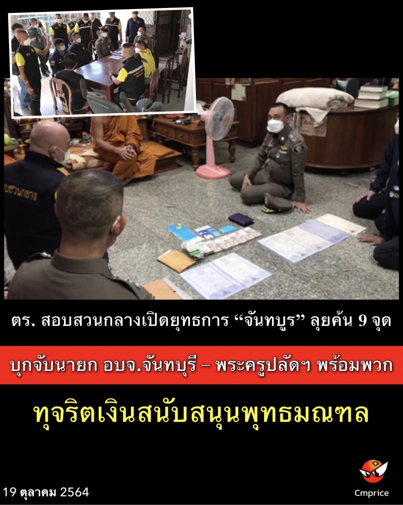 ตร. สอบสวนกลางเปิดยุทธการ “จันทบูร” ลุยค้น 9 จุด บุกจับนายก อบจ.จันทบุรี – พระครูปลัดฯ พร้อมพวก ทุจริตเงินสนับสนุนพุทธมณฑล