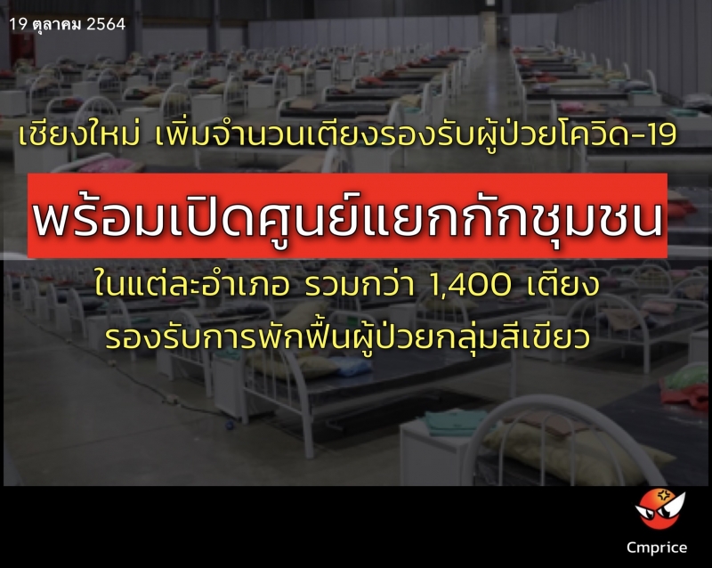 เชียงใหม่ เพิ่มจำนวนเตียงรองรับผู้ป่วยโควิด-19 พร้อมเปิดศูนย์แยกกักชุมชนรองรับการพักฟื้นผู้ป่วยกลุ่มสีเขียว
