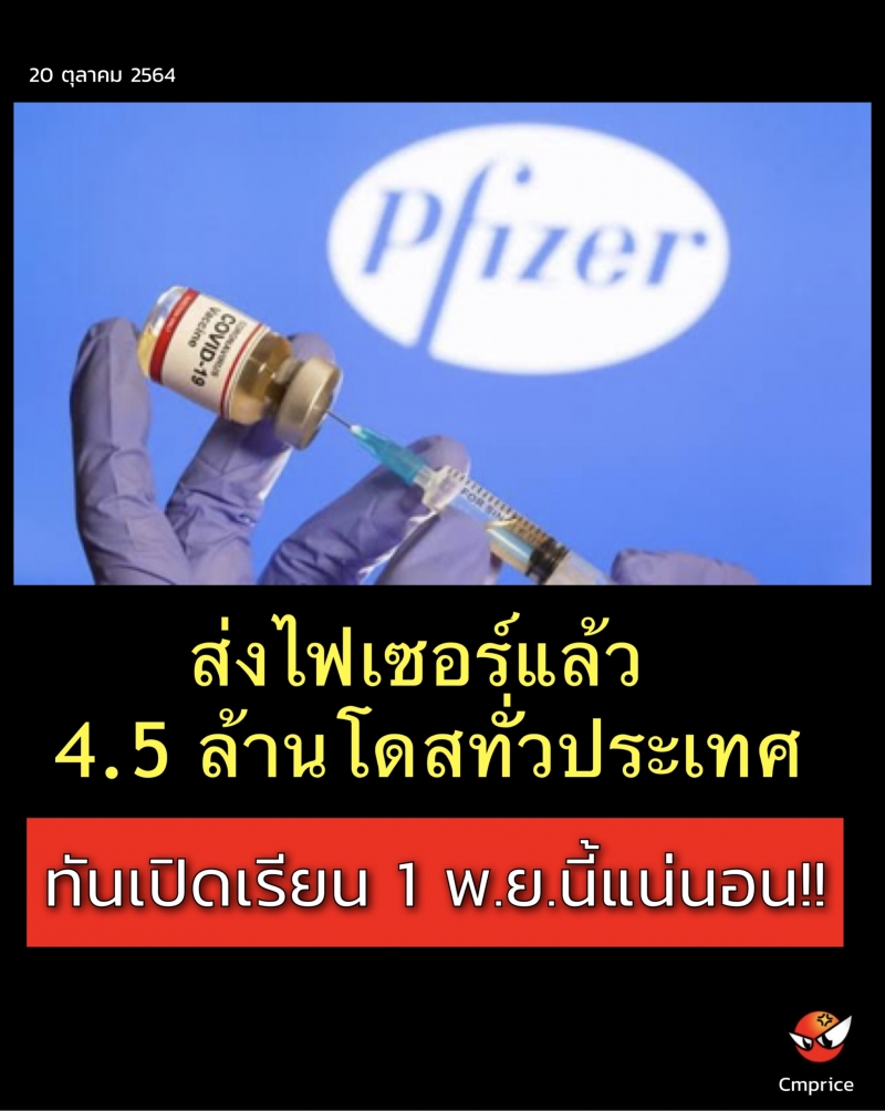 | • ส่งไฟเซอร์แล้ว 4.5 ล้านโดสทั่วประเทศ ทันเปิดเรียน 1 พ.ย.นี้แน่นอน!! |