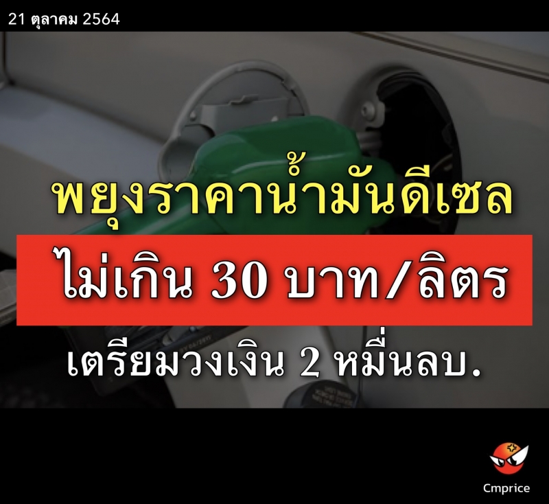 พยุงราคาน้ำมันดีเซลไม่เกิน 30 บาท/ลิตร เตรียมวงเงิน 2 หมื่นลบ. รักษาเสถียรภาพราคาน้ำมันต่อเนื่อง