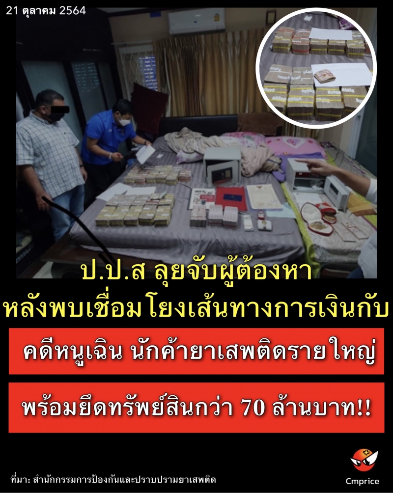 ป.ป.ส ลุยจับผู้ต้องหาหลังพบเชื่อมโยงเส้นทางการเงินกับคดีหนูเฉิน นักค้ายาเสพติดรายใหญ่ พร้อมยึดทรัพย์สินกว่า 70 ล้านบาท