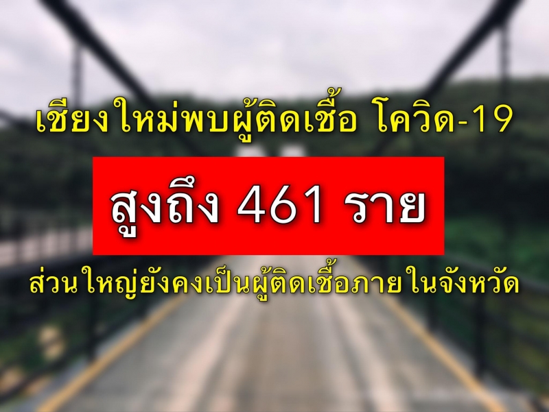 จังหวัดเชียงใหม่พบผู้ติดเชื้อรายใหม่เพิ่มสูง 461 ราย ส่วนใหญ่ยังคงเป็นผู้ติดเชื้อในจังหวัดถึง 456 ราย และพบผู้เสียชีวิตเพิ่มอีก 2 ราย เสียชีวิตสะสม 49 ราย