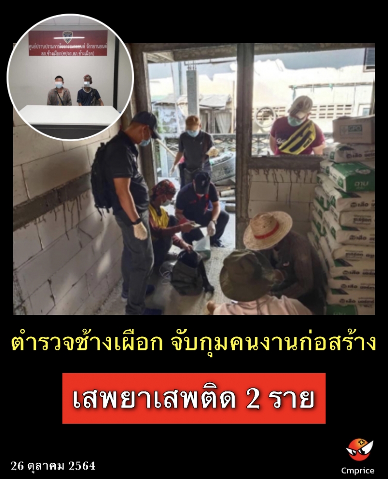 ตำรวจช้างเผือก จับกุมคนงานก่อสร้างเสพยาเสพติด