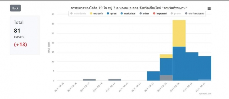พบผู้ติดเชื้อในครอบครัวและสัมผัสผู้ติดเชื้อรายก่อนหน้า รวมจำนวน 58 ราย โดยพบการระบาดในหลายครอบครัว กระจายหลายอำเภอ และส่วนใหญ่ยังมีการปกปิดข้อมูลความเสี่ยง เนื่องจากทำกิจกรรมที่มีการรวมกลุ่มและห้ามดำเนินการ ทำให้เกิดการสัมผัสในครอบครัว และอยู่ระหว่างการสอบสวนโรคอีก 44 ราย