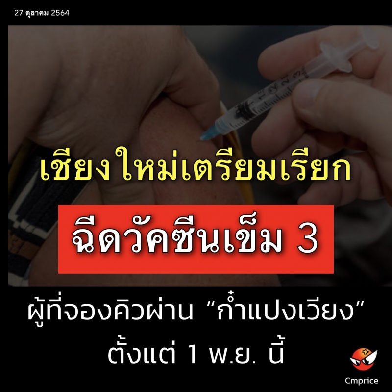 เชียงใหม่เตรียมเรียกฉีดวัคซีนเข็ม 3 ผู้ที่จองคิวผ่าน “ก๋ำแปงเวียง” ตั้งแต่ 1 พ.ย. นี้