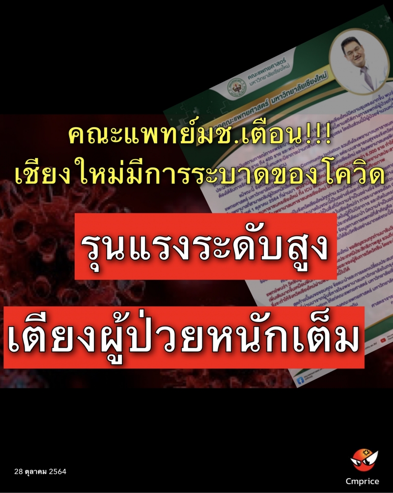 คณะแพทย์มช.เตือนเชียงใหม่มีการระบาดของโควิดรุนแรงระดับสูง!!! เตียงผู้ป่วยหนักเต็ม!!!