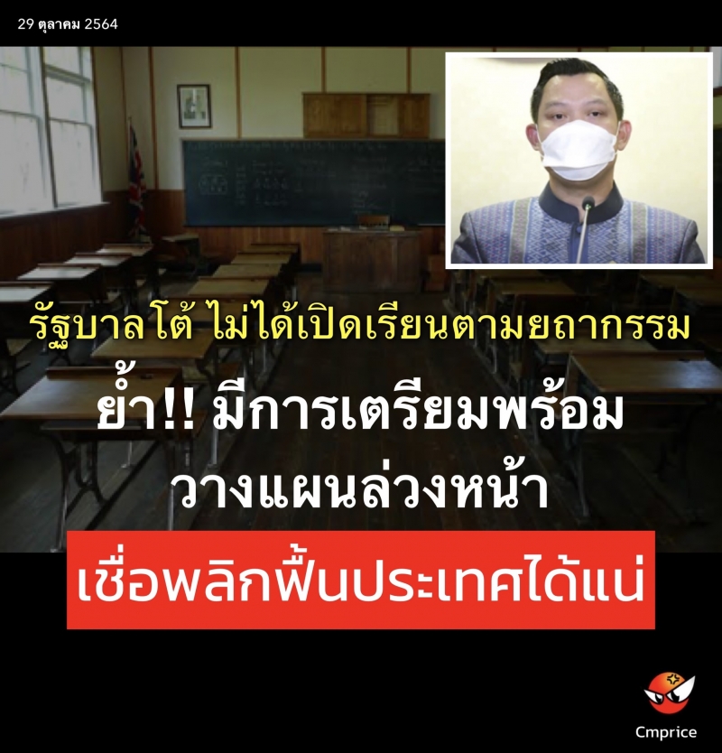 | • รัฐบาลโต้ ไม่ได้เปิดเรียนตามยถากรรม ย้ำ มีการเตรียมพร้อม-วางแผนล่วงหน้า เชื่อพลิกฟื้นประเทศได้แน่ |