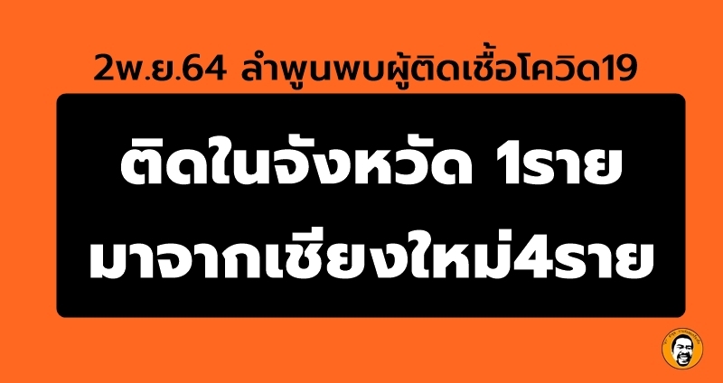 2 พฤศจิกายน 64 ศูนย์ข่าวโควิด 19 ลำพูน ได้แถลง ลำพูนพบผู้ติดเชื้อเพิ่ม 5ราย เป็นการติดเชื้อในจังหวัด1ราย มาจากต่างจังหวัด 4ราย(เชียงใหม่) สามารถดูและฟังแถลง ได้ข้างล่าง