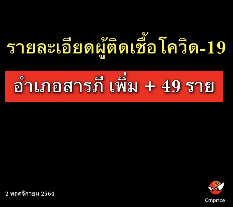2 พฤศจิกายน 2564 งานควบคุมโรคติดต่อ สสอ.สารภี รายงานสถานการณ์โรคติดเชื้อไวรัสโคโรนา 2019 (COVID - 19) อำเภอสารภี เพิ่ม + 49 ราย