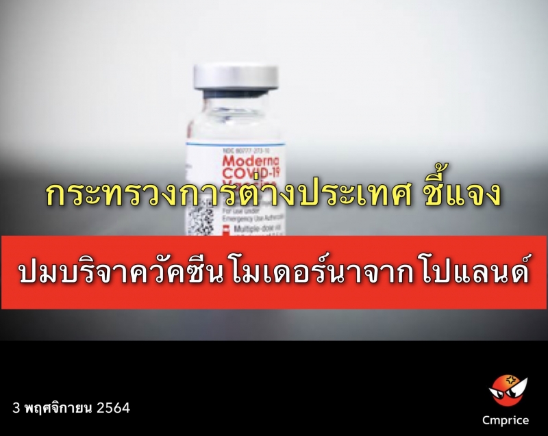 กต.ชี้แจงปมบริจาควัคซีนโมเดอร์นาจากโปแลนด์ ยึดประโยชน์ชาติ หวั่นกระทบสัมพันธ์ประเทศ “บริจาคแต่นำมาขาย” ย้ำ กต.โปแลนด์ไม่เคยแจ้งจะให้วัคซีนกับไทย