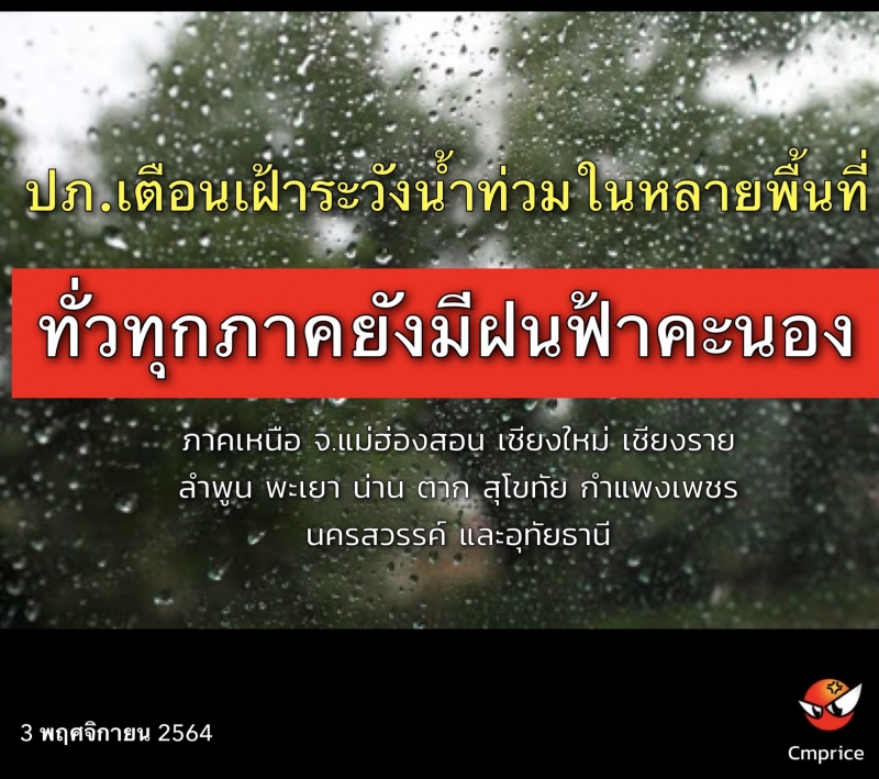 | • ปภ.เตือนเฝ้าระวังน้ำท่วมในหลายพื้นที่ ทั่วทุกภาคยังมีฝนฟ้าคะนอง |