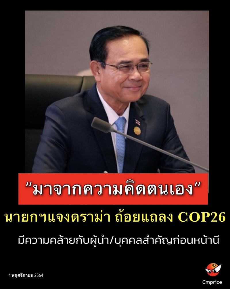 | • นายกฯแจงดราม่า ถ้อยแถลง COP26 มีความคล้ายกับผู้นำ/บุคคลสำคัญก่อนหน้านี้ มาจากความคิดตนเอง |