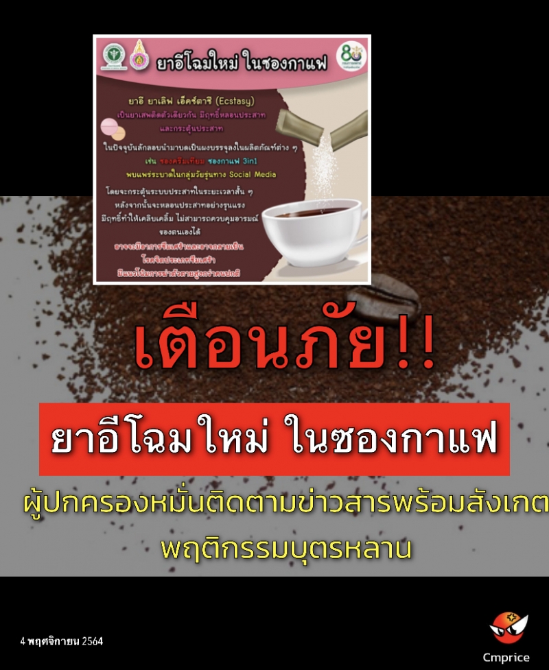 ยาอีโฉมใหม่ ในซองการแฟ เตือนผู้ปกครองหมั่นติดตามข่าวสารพร้อมสังเกตพฤติกรรมบุตรหลาน