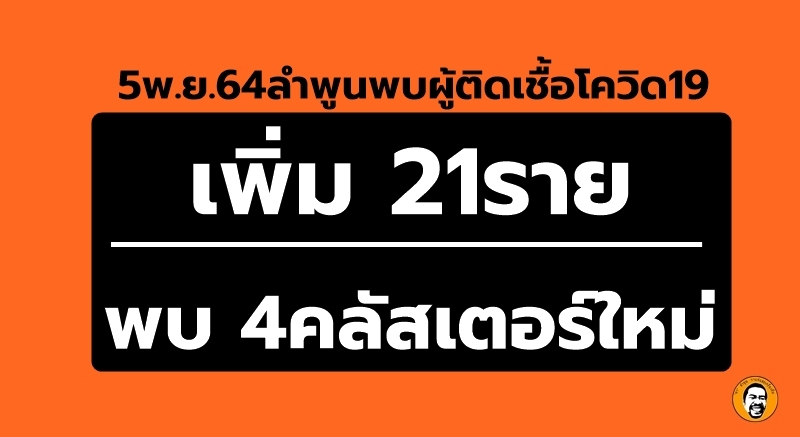 5 พฤศจิกายน 64 ศูนย์ข่าวโควิด 19 ลำพูน ได้แถลงว่า ลำพูนพบผู้ติดเชื้อเพิ่ม 21ราย  เป็นการติดเชื้อในจังหวัด16ราย มาจากต่างจังหวัด 5ราย  สามารถดูและฟังแถลง ได้ข้างล่าง