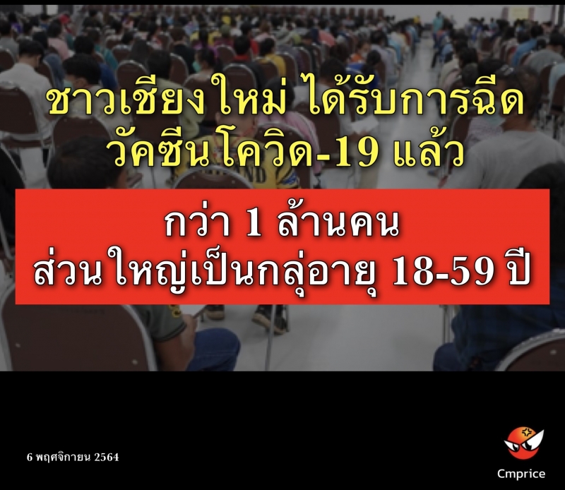 ชาวเชียงใหม่ ได้รับการฉีดวัคซีนโควิด-19 แล้วกว่า 1 ล้านคน ส่วนใหญ่เป็นกลุ่มอายุ 18-59 ปี