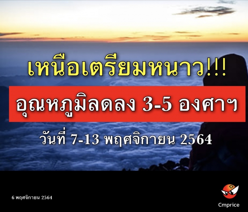 | • เหนือเตรียมหนาว อุณหภูมิลดลง 3-5 องศาฯ วันที่ 7-13 พฤศจิกายน 2564 |