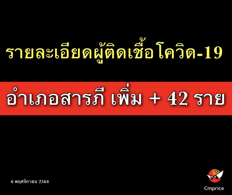 6 พฤศจิกายน 2564 งานควบคุมโรคติดต่อ สสอ.สารภี รายงานสถานการณ์โควิด-19 อำเภอสารภี เพิ่ม + 42 ราย