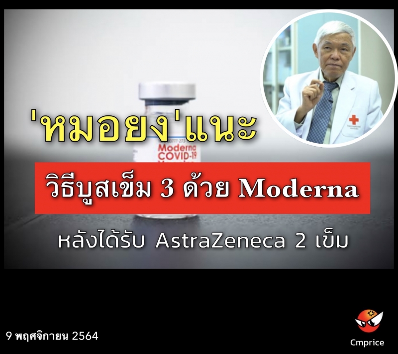 | • 'หมอยง'แนะวิธีบูสเตอร์เข็ม 3 ด้วย Moderna หลังได้รับ AstraZeneca 2 เข็ม |